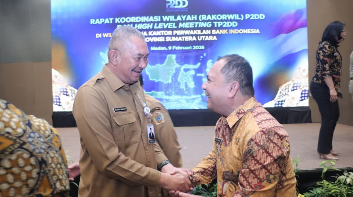 MEDAN - Bupati Dairi yang diwakili Sekretaris Daerah (Sekda) Kabupaten Dairi, Charles Bantjin menghadiri Rapat Koordinasi Wilayah (Rakorwil) dan High Level Meeting (HLM) Percepatan dan Perluasan Digitalisasi Daerah (P2DD) Wilayah Kerja Kantor Perwakilan Bank Indonesia Provinsi Sumatera Utara Tahun 2026 yang berlangsung di Dyandra Santika Convention Centre, Medan, Senin (9/2/2026).