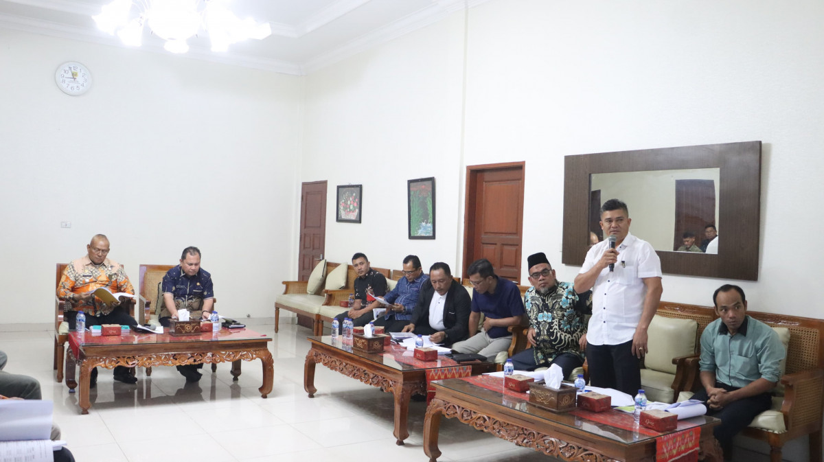 Sidikalang - Bupati Dairi Vickner Sinaga di dampingi oleh Sekretaris Daerah Surung Charles Bantjin memimpin rapat bersama Perumda Air Minum Lae Nciho, PD Pasar dan Perumda Pembangunan, Jumat (19/12/2025) di Pendopo Bupati. Rapat bersama tersebut membahas terkait rencana kerja serta rencana anggaran oleh masing-masing instansi untuk tahun 2026, juga turut dihadiri Kepala Bagian Perekonomian Lipinus Sembiring.