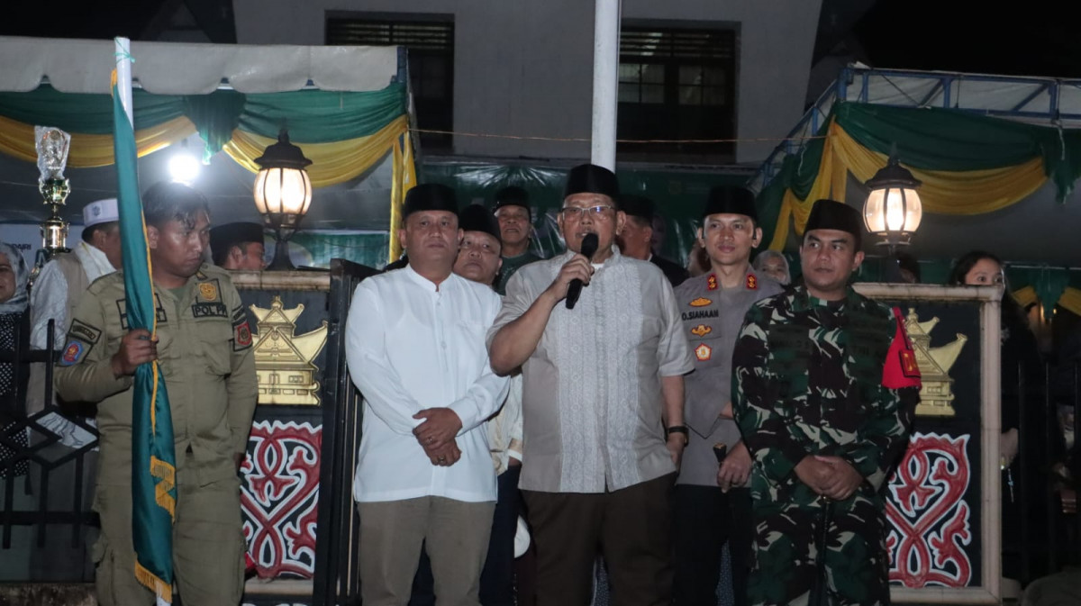 Bupati Dairi Vickner Sinaga melepas pawai takbiran dan festival tabuh bedug dalam rangka menyambut hari raya idul fitri 1447 Hijriah tahun 2026, Jumat (20/3/2026). Pawai takbiran dan festival bedug di lepas dari kantor Bupati, di ikuti dengan penuh antusias oleh masyarakat.
