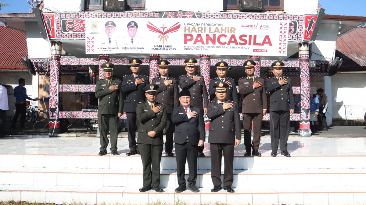 Dairi- Bupati Dairi, Diwakili Sekretaris Daerah, Charles Bantjin menjadi Inspektur Upacara( Irup) Peringatan Hari Lahir Pancasila Tahun 2025 di Halaman Kantor Bupati (2/6/2025).