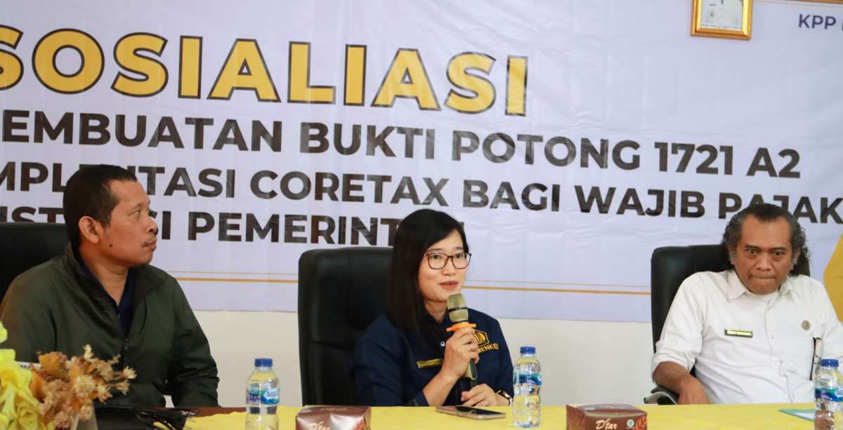 DAIRIKAB.go.id - Kantor Pelayanan Penyuluhan dan Konsultasi Perpajakan (KP2KP) Sidikalang bekerjasama dengan Badan Keuangan dan Aset Daerah (BKAD) Kabupaten Dairi dan Badan Perencanaan Pembangunan Daerah (Bappeda) Kabupaten Dairi, menggelar Sosialisasi pembuatan Bukti Potong 1721-A2 dan Implementasi Coretax dengan para bendahara di lingkungan Pemerintah Kabupaten Dairi, Rabu, (15/1/2025) di Aula Kantor Bappeda, Kabupaten Dairi.