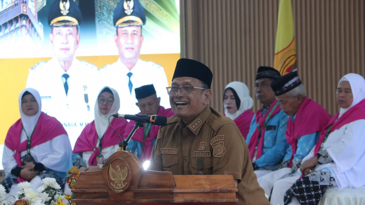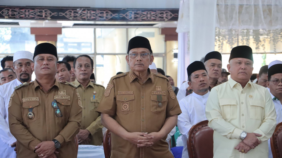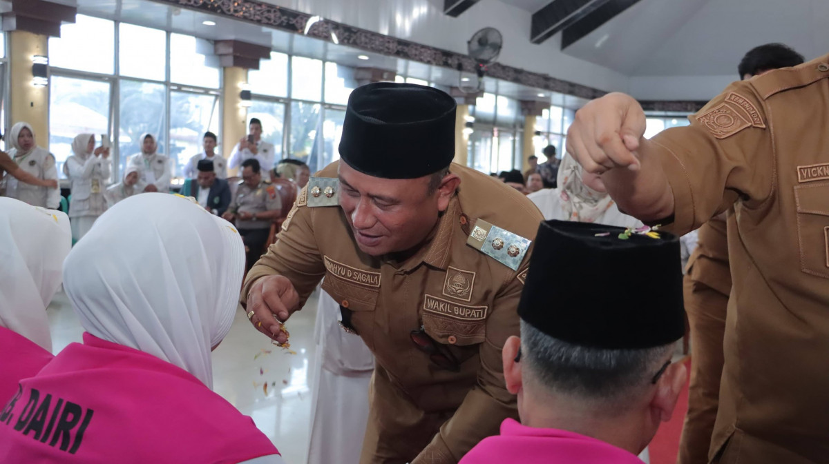 Bupati Dairi, Ir. Vickner Sinaga didampingi Wakil Bupati Dairi, Wahyu Daniel Sagala menghadiri dan mengikuti acara Tepung Tawar Jemaah Calon Haji Kabupaten Dairi yang berjumlah 17 orang. Senin (20/4/2026) di Balai Budaya Sidikalang.