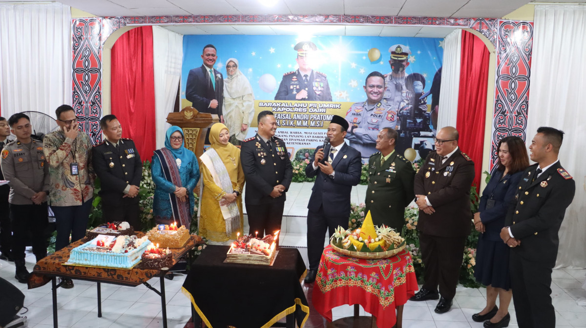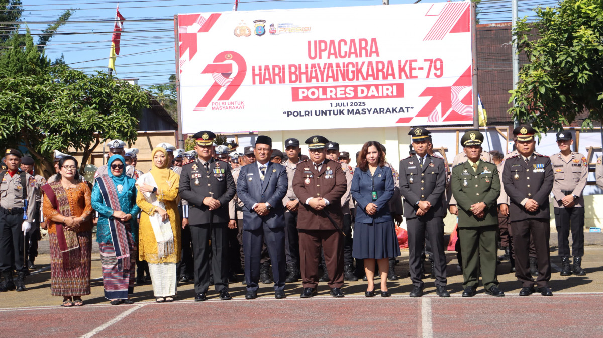 Wakil Bupati Dairi, Wahyu Daniel Sagala menghadiri upacara dan syukuran hari Bhayangkara ke-79 Tahun 2025. Selasa (1/7/2025) di aula Polres Dairi