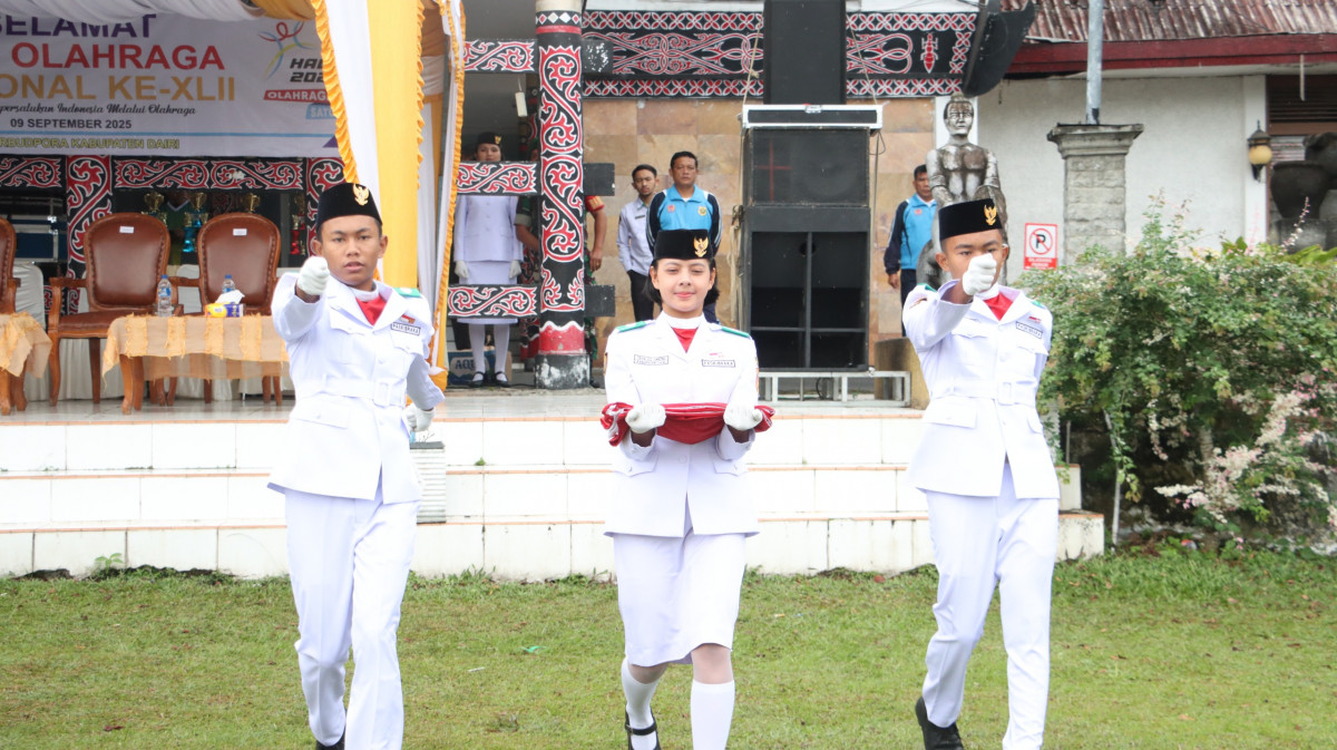 Dairikab- Wakil Bupati Dairi, Wahyu Daniel Sagala memimpin upacara peringatan Hari Olahraga Nasional (HAORNAS) ke-42 Tahun 2025, Selasa (9/9/2025) di halaman kantor Bupati Dairi