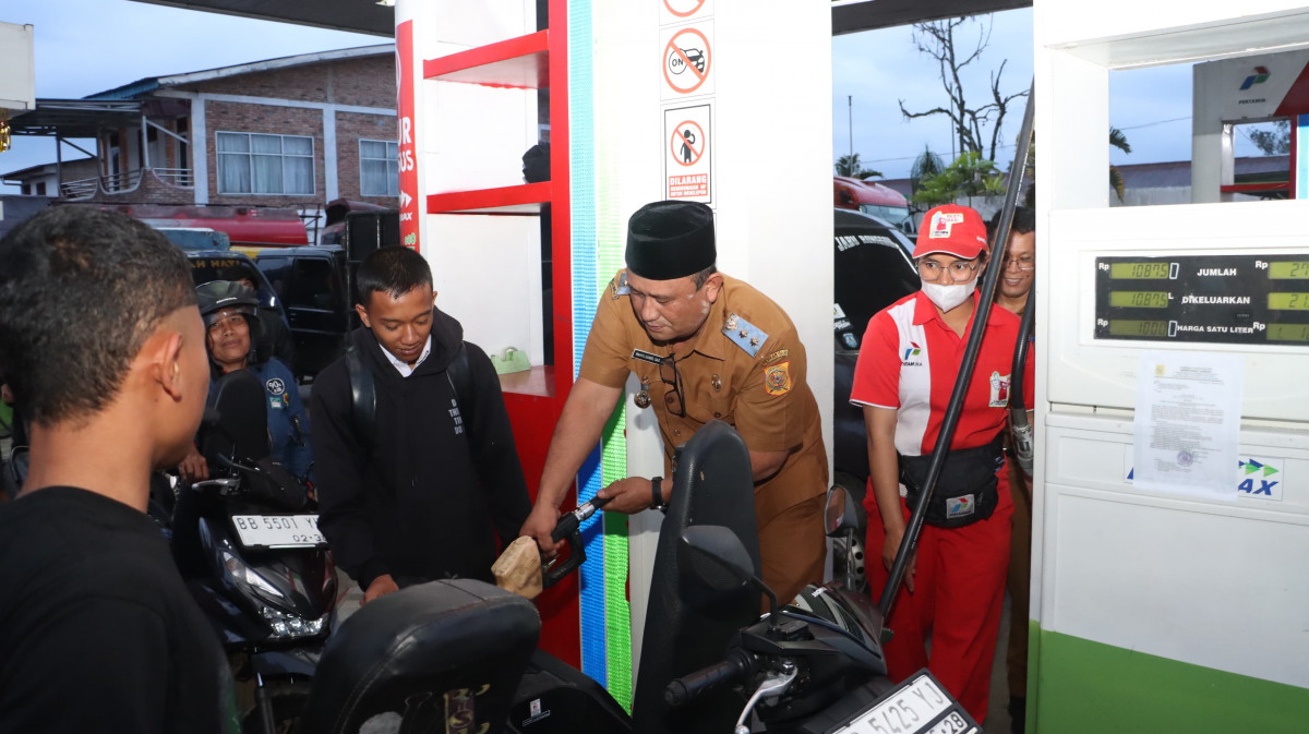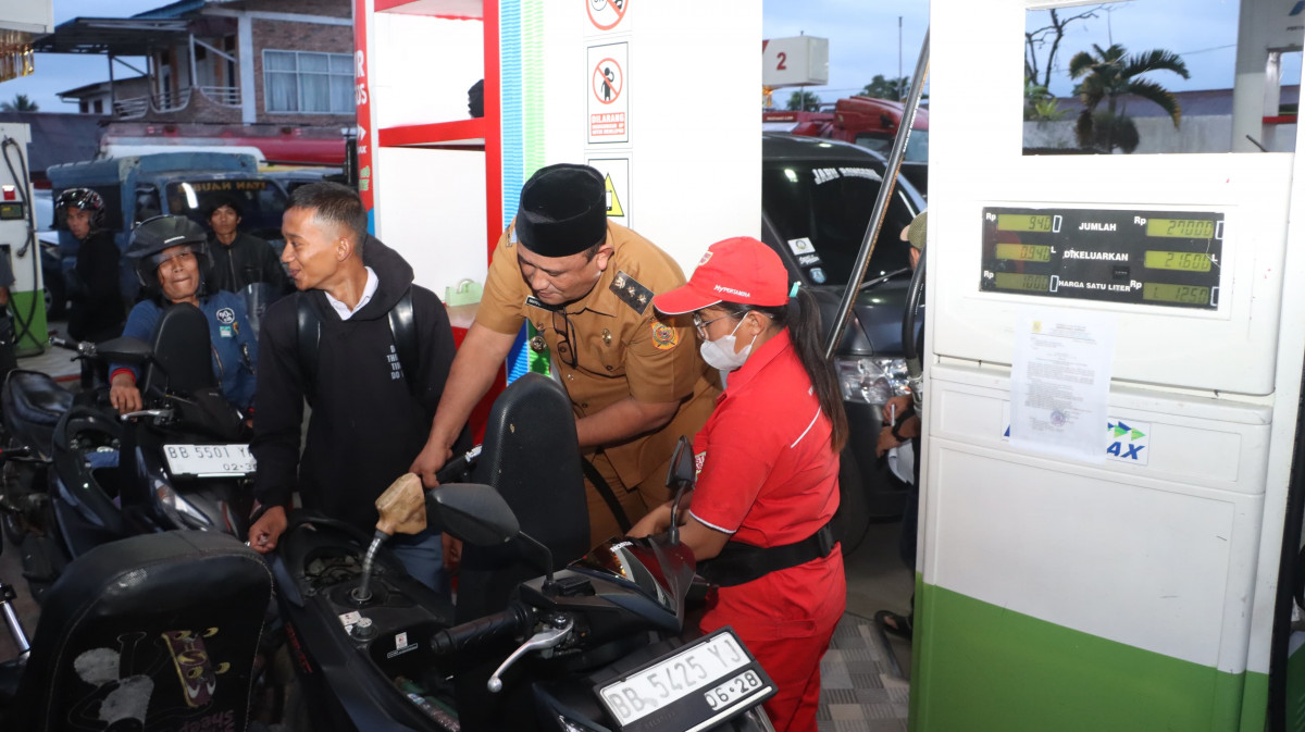 Dairi- Wakil Bupati Dairi, Wahyu Daniel Sagala dan Kapolres Dairi, AKBP, Otniel Siahaan meninjau penyaluran Bahan Bakar Minyak (BBM) di SPBU 14 222 243, Batang Beruh, Senin (8/12/2025). Kehadiran Wakil Bupati ini guna memastikan pendistribusian BBM di Dairi berjalan lancar dan aman.