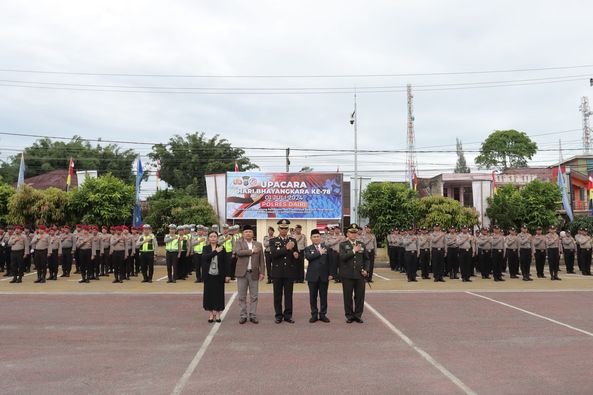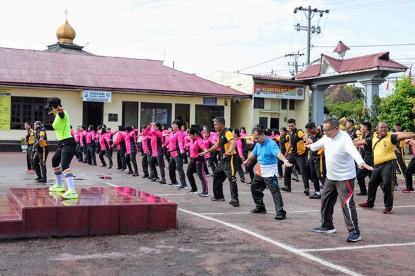 Sambut HUT Bhayangkara ke-78, Pj Bupati Dairi Ikuti Jalan Santai Dan Senam Bersama Polres Dairi